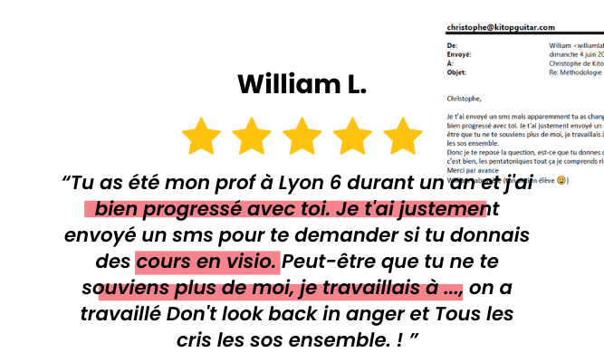 J'enseigne depuis + de 25 ans (déjà !) aux débutants et intermédiaires ! Ma méthode provient d'un fameux mélange de mes 10 années au conservatoire en guitare classique, de mon parcours d'autodidacte pour les musiques "actuelles" (Blues, rock, pop-rock...), mon expérience avec mes élèves tout aussi différent les uns des autres, de mes rencontres avec tout ceux qui m'ont permis de perfectionner ma pédagogie. Merci à eux. Bienvenue à TOI !